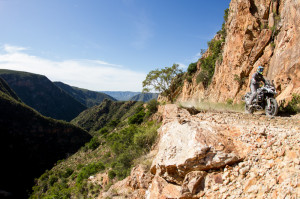 The all-new R1200GS Adenture was launched to relevant South African media 7-11 April 2014. Journalists rode the adventure motorcycles from Port Elizabeth trhough the Baviaanskloof to overnight at Tsala treetops lodge near Knysna. A tar route via Natures Valley and Storms River Mouth followed on the second day, finishing in Port Elizabeth. Image by Greg Beadle